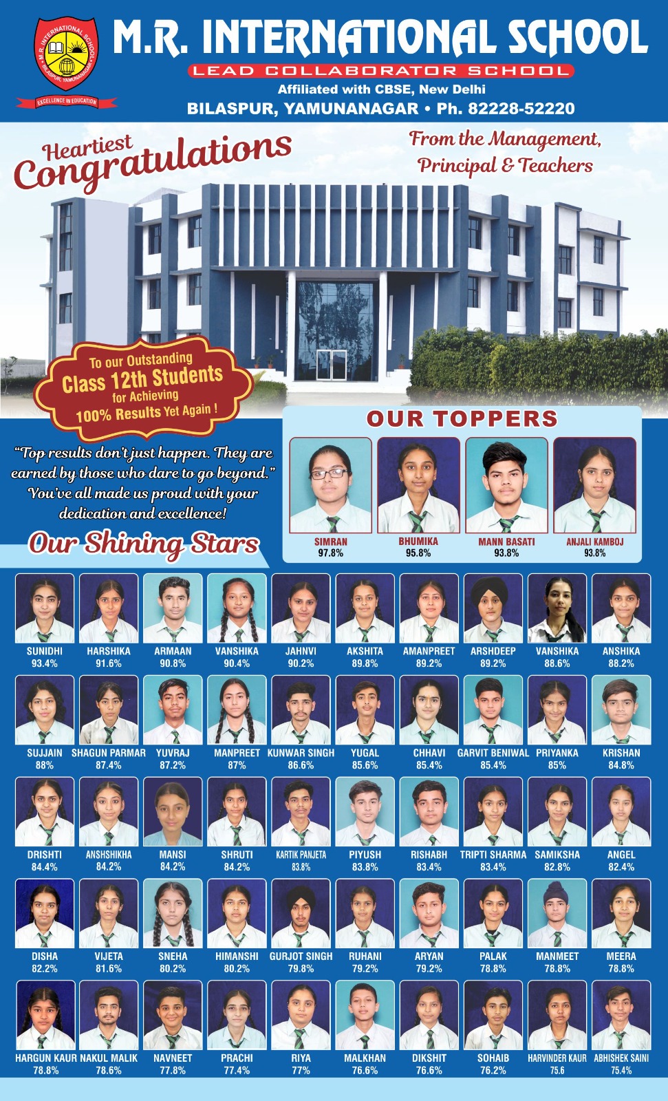 *It is with immense pride and joy that I share the outstanding results of our Class 12 Board Examinations. The dedication, perseverance, and unwavering spirit of our students have once again brought great laurels to M.R. International School.*