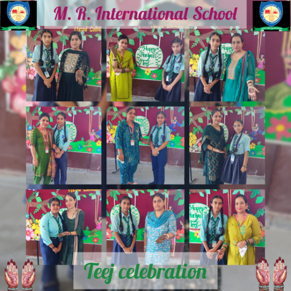 Dear Students and Parents, We are delighted to announce that Hariyali Teej will be celebrated on Wednesday, August 7th, 2024. This vibrant festival honors the union of Goddess Parvati and Lord Shiva, with married women observing fasts, adorning themselves in green, and applying henna. It's a joyous occasion marked by prayers for marital bliss and family prosperity. We wish everyone a joyous and blessed Hariyali Teej! Warm regards, Principal M.R. lnternational School Bilaspur