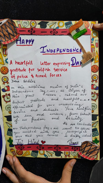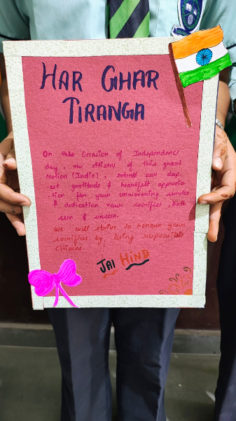 Dear Parents and Students Har Ghar Tiranga Highlights 🇮🇳 We’re proud to share the vibrant spirit of Har Ghar Tiranga (CBSE – 2025) through our students’ creativity and patriotic passion! ✨ Class 6–8: Little hands made beautiful Tricolor Rakhi, crafted with love and the spirit of unity, as part of Phase I (2–8 August) activities. These meaningful pieces were prepared with care to be sent to soldiers and police personnel via the Department of Posts. ✠Class 9–12: In a heartwarming letter-writing drive (also during Phase I), our students penned notes of gratitude and encouragement to the armed forces and police — a token of respect for their bravery and service. These activities are part of the Har Ghar Tiranga campaign (2–15 August 2025), which encouraged flag-hoisting at home, selfies with the Tiranga, Tricolor rallies, exhibitions, and more . Let’s continue to celebrate unity, creativity, and patriotism together. Jai Hind! 🇮🇳â¤ï¸ warm regards Ruchi Makin Principal